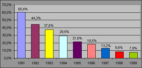 Ważnym wydarzeniem była przeprowadzona w 1995 r. denominacja złotego, czyli wprowadzenie do obiegu nowych znaków pieniężnych zastępujących stare złote w stosunku 1:10 000. Według tej samej relacji przeliczono ceny, płace, wszelkie należności, zobowiązania i prawa majątkowe. NBP przeprowadził szeroką akcję informacyjną, dzięki czemu cała skomplikowana operacja przebiegła spokojnie i bez zakłóceń.